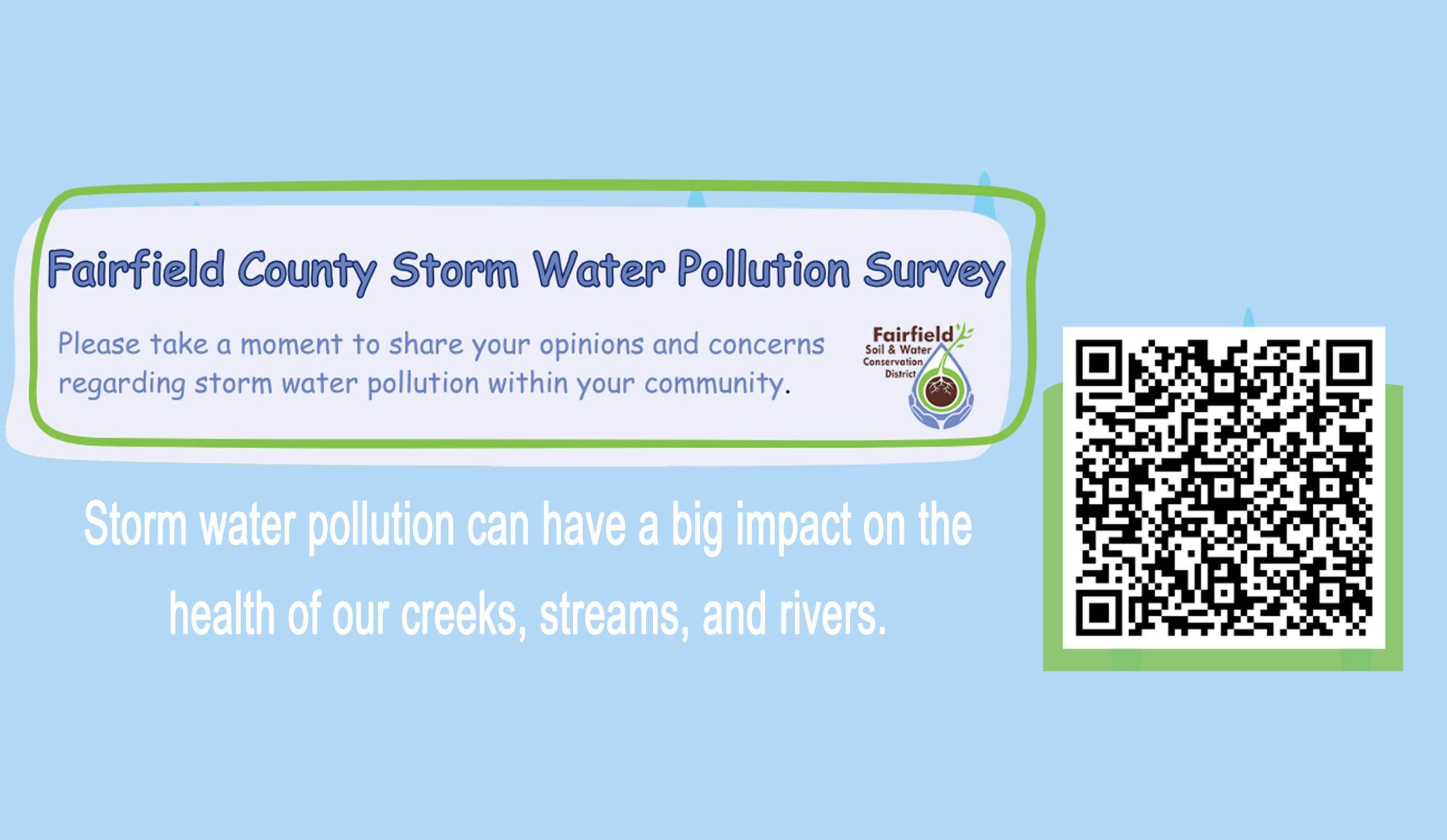 Storm water pollution can have a big impact on the health of our creeks, streams and rivers. Please take a moment to share your opinions and concerns regarding storm water pollution within your community